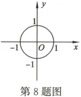 8. 如图,在平面直角坐标系中,$\odot O$的半径为1,则直线$y=x-\sqrt{2}$与$\odot O$的位置关系是(