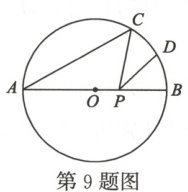9. 如图,$AB$是$\odot O$的直径,$AB=2$,点$C$在$\odot O$上,$\angle CAB=30^{\circ}$,$D$为$\overset{\x0crown}{BC}$的中点,$P$是直径$AB$上一动点,则$PC+PD$的最小值为(