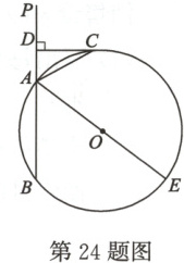 24. (12分)如图,已知直线$ PA $交$ \odot O $于$ A $,$ B $两点,$ AE $是$ \odot O $的直径,点$ C $为$ \odot O $上的一点,且$ AC $平分$ \angle PAE $,过点$ C $作$ CD \perp PA $,垂足为$ D $。