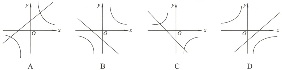 10. 一次函数 $ y = kx - 1 $ 与反比例函数 $ y = \frac{k}{x} (k \neq 0) $ 的图象的形状大致是(