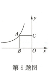 8. 如图,正方形ABOC的边长为2,反比例函数 $ y = \frac{k}{x} $ 的图象过点A,则k的值是(