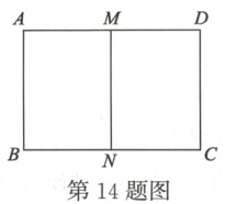 14. 如图,把矩形$ABCD$对折,折痕为$MN$,矩形$DMNC$与矩形$ABCD$相似,已知$AB = 4$,则$AD =$