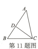 11. 如图,在$\triangle ABC$中,$D$是$AB$边上一点,连接$CD$,要使$\triangle ADC$与$\triangle ABC$相似,应添加的一个条件是