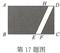 17. (8 分)如图,在宽为 40 m 的一条绿化带上开一条路,若$EF = 10\ m$,$FC = 30\ m$,试求这条路的宽度.