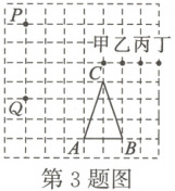 3. 如图,若A,B,C,P,Q,甲、乙、丙、丁都是方格纸中的格点,为使△PQR∽△ABC,则点R应是甲、乙、丙、丁四点中的(