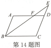 14. 如图,在▱ABCD中,E是CD延长线上的一点,BE与AD交于点F,CD=2DE. 若△DEF的面积为a,则▱ABCD的面积为
