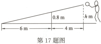 17. (8分)如示意图,小明在打网球时,使球恰好能打过网,而且落点恰好在离网6 m的位置上,求球拍击球的高度h.
