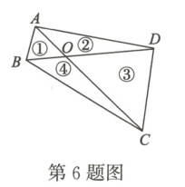 6. 如图,四边形$ABCD$的对角线$AC$,$BD$相交于点$O$,且将这个四边形分成①、②、③、④四个三角形.若$OA:OC=OB:OD$,则下列结论中一定正确的是( )