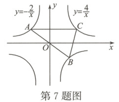 7. 如图,在平面直角坐标系中,函数$y=kx$与$y=-\frac{2}{x}$的图象交于$A$,$B$两点,过点$A$作$y$轴的垂线,交函数$y=\frac{4}{x}$的图象于点$C$,连接$BC$,则$\triangle ABC$的面积为( )