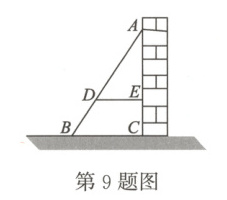 9. 如图,$AB$是斜靠在墙上的长梯,$D$是梯上一点,梯脚$B$与墙脚的距离为$1.6$m(即$BC$的长),点$D$与墙的距离为$1.4$m(即$DE$的长),$BD$的长为$0.55$m,则梯子的长为( )
