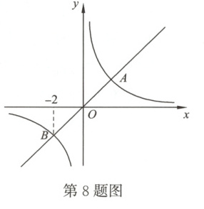 8. 正比例函数$y_1=k_1x$的图象与反比例函数$y_2=\frac{k_2}{x}$的图象相交于$A$,$B$两点,其中点$B$的横坐标为$-2$,当$y_1<y_2$时,$x$的取值范围是( )