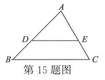 15. 如图,$DE$与$\triangle ABC$的边$AB$,$AC$分别相交于$D$,$E$两点,且$DE// BC$.若$DE=2$,$AE=\frac{4}{3}$,$EC=\frac{2}{3}$,则$BC=$__________.