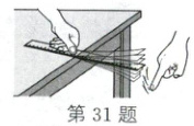 31. (2024·常州)如图所示,拨尺发声实验中,多次改变尺伸出桌面的长度,用相同的力拨动尺端,尺发出不同的声音。不同的声音主要指其(