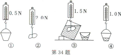 34. (2023·烟台)某实验小组为了探究浮力大小与物体排开液体重力的关系,进行了下面的实验,如图所示。