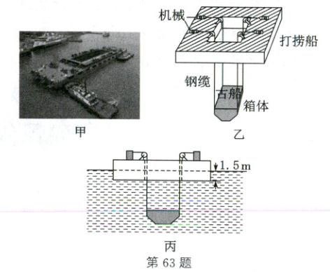63. (2025·湖北)长江口二号古船是用整体打捞技术提取的宝贵水下文化遗产。如图甲,打捞船可看作中间开着方井的长方体,俯瞰为