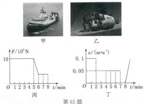 65. (2025·成都)假期,小美一家开启深海科技探究之旅。请根据她在学习中获得的信息完成相关计算。分析过程忽略液体扰动等次要因素,ρ_海水=ρ_水=1.0×10³kg/m³,g取10N/kg。