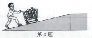 3. (2025·威海)如图所示,用 150 N 的推力沿斜面向上将重为 500 N 的小车从斜面(高 1.2 m,长 5 m)底端匀速推到顶端,用时 20 s,则推力做功为