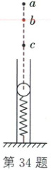 34. (2024·潍坊)(多选题)弹簧置于光滑管内,下端固定在水平面上,上端与管口平齐。如图所示,将一直径略小于管口的小球放在弹簧上端,先后两次向下按压弹簧到不同位置后释放小球,小球沿竖直方向运动,第一次小球到达的最高点为$a$,第二次小球到达的最高点为$b$,$c$为小球运动路径上的一点,小球所受空气阻力忽略不计,则先后两次(