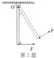 5. (2025·龙东地区)如图所示,将重为G的均匀木棒竖直悬挂于O点,在其下端施加一个始终垂直于木棒的动力F,让木棒缓慢地转动到图中虚线所示的位置,则阻力臂将