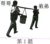 1. (2025·扬州)如图是兄弟二人抬水的场景,扁担相当于杠杆,若以哥哥的肩为支点,弟弟对扁担的作用力是动力,哥哥将水桶悬挂点向自己移动一段距离,动力臂