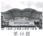 48. (2025·威海)如图所示,体育场紧邻主干道,当运动员经过带有弧形顶棚的主席台时,听到的外面车辆声音总是比在体育场其他地方听到的车辆声音大。下列说法错误的是(