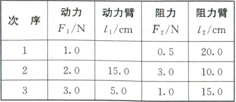 (2) 他们三次实验的数据如表,分析可知,杠杆的平衡条件是