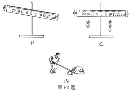 。(4) 用木棒撬动大石头时,固定支点位置后,如图丙所示,要想用较小的力撬动这块大石头,应将支点到手施力的作用线的距离