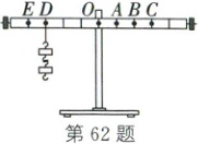 调节,使之在水平位置平衡。(2) D点悬挂两个钩码,A、B、C三点分别悬挂六个、三个、两个钩码,杠杆均能在水平位置平衡,这说明杠杆平衡时,力臂越大,对应的力越