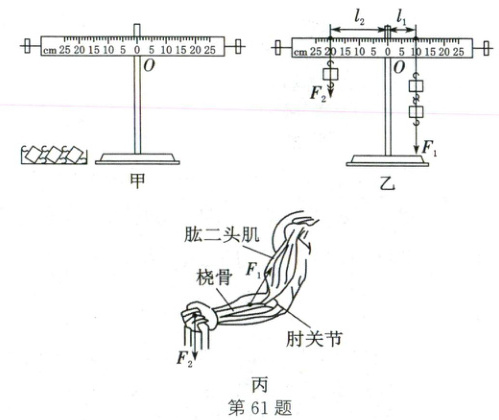 (3) 如图丙所示,人的手臂是一根杠杆,由杠杆平衡条件可知,手臂是一根