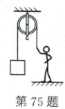 75. (2025·辽宁)如图,某同学用一个定滑轮将质量为10kg的重物匀速向上提起9m,其所做的总功为1000J。g取10N/kg。求该过程中: