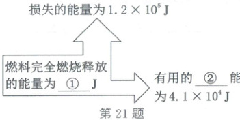 21. (2025·烟台)汽油机是燃油汽车的动力来源之一。如图所示是某台汽油机工作时的能量数据,图中横线处应填写的内容是①