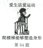 64. (2025·山西)小亮看到如图所示的阳光健身海报,决定每天放学回家由乘电梯改为爬楼梯。查阅资料知道,人运动所需的能量可来源于体内脂肪“燃烧”释放的化学能,1g脂肪完全“燃烧”释放的能量为$ 3.8×10^{4}J $(即可看作脂肪的热值$ q = 3.8×10^{4}J/g $)。若小亮的质量为60kg,家住11楼,每层楼高为3m。($ g $取10N/kg)