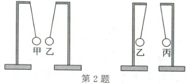 2. (2025·广安)甲、乙、丙三个轻质带电小球用绝缘细线悬挂,甲带正电,他们之间的相互作用如图所示,乙带电情况是带
