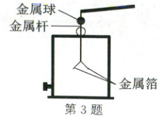 3. (2025·北京)如图所示,用毛皮摩擦过的橡胶棒接触验电器的金属球时,验电器的金属箔张开是由于