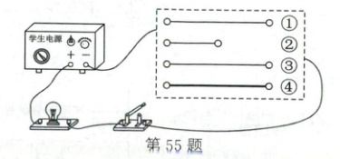 55. (2025·武汉)某同学利用如图所示的装置探究影响导体电阻大小的因素,实验中四根金属丝的规格如表所示。下列说法正确的是(