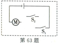 63. (2025·广东)小明家的智能门锁,可通过指纹识别开关$S_{1}$或密码识别开关$S_{2}$控制电动机开锁,请在图中完成其简化电路设计。