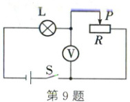 9. (2025·自贡)如图,闭合开关 S,无论怎样移动滑片 P,发现电压表示数始终接近电源电压,经查灯泡 L 完好,出现这一现象的原因是滑动变阻器