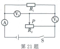 21. (2025·苏州)如图所示的电路中,闭合开关 $ S $ 后,当滑片 $ P $ 向右移动时,则(