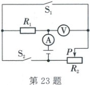 )A.仅闭合 $ S_1 $,将滑片 $ P $ 向右移动,$ A $ 的示数变小,$ V $ 的示数变大