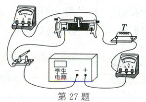 27. (2024·扬州)如图所示,电源电压恒为 $ 6 \, V $,敏感元件 $ T $ 的电阻随电流的增大而减小。电压表示数为 $ 2 \, V $ 时,电流表示数为 $ 0.2 \, A $,当电压表示数为 $ 2.4 \, V $ 时,电流表示数可能(