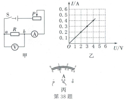 38. (2025·吉林)某学习小组在“探究电流与电压的关系”实验中,所用的实验器材有:电源(电压恒为4.5V)、滑动变阻器(20Ω 1A)、定值电阻、开关、电流表、电压表各一个,导线若干。