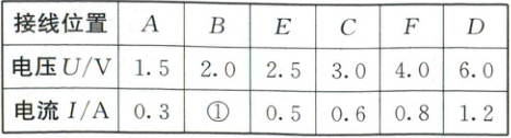 (4) 排除故障后,闭合开关,保持夹子N位置不动,夹子M依次接在变阻器的A、B、E、C、F、D六个点,每次电表均选用合适的量程,进行实验,收集数据并记录在表格中。