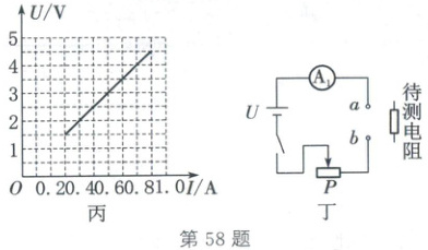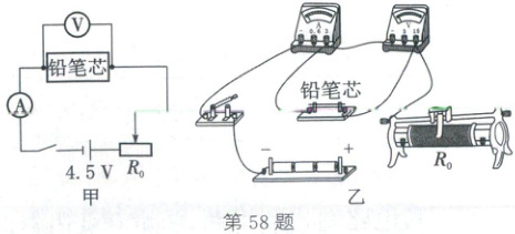 58. (2025·镇江)小华在实验室中测量铅笔芯的电阻大小。测量电路如图甲所示,电源电压为$4.5V$。