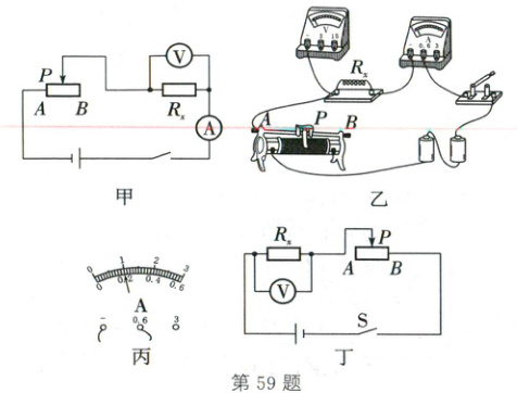 59. (2025·达州)“动手知真”小组在“用电流表和电压表测电阻”实验时,选取如下器材:干电池两节、电流表和电压表各一只、滑动变阻器一个(最大阻值为$R_{0}$)、待测定值电阻$R_{x}$和导线若干。