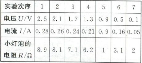 (4) 小灯泡正常发光后,调节滑动变阻器,让电压逐次下调,灯泡变暗直至完全不发光,测量的数据如下表所示。检查小星的数据表,你认为第______次实验的数据存在明显错误。