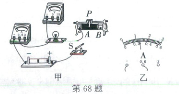 (3) 排除故障后进行实验,当滑动变阻器的滑片移至某一位置时,电压表的示数为$2.1V$,电流表的示数如图乙所示,为______A,此时小灯泡的电阻为______$\Omega$(计算结果保留一位小数)。