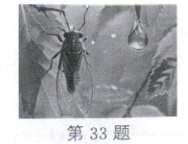 33. (2025·菏泽)仲夏晨曦光初透,枝头栖蝉被星露。如图所示,蝉身上的露珠形成时发生的物态变化是 (