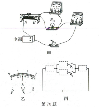 70. (2024·南京)两只铭牌模糊的小灯泡$L_{1}$、$L_{2}$,仅能看清分别标有“$2.5\mathrm{V}$”和“$0.2\mathrm{A}$”字样。要求测量它们正常发光时的电阻$R_{L1}$和$R_{L2}$。