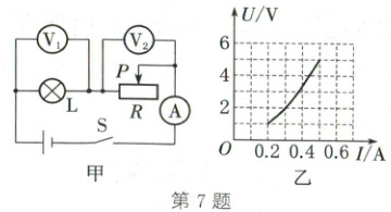 7. (2025·贵州)如图甲所示电路中,电压表 V₁ 测量
