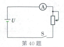 40. (2025·南充)(多选题)如图所示,采用两条输电线向用户输电,输电线电阻不能忽略。已知电源电压恒为 220 V,用“400 Ω 2 A”的滑动变阻器代替用电器,当滑片移至中点时,闭合开关,电流表示数为 1 A,则此时(